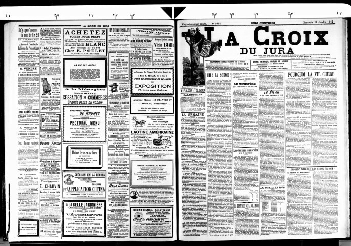 En 1891, Croix du Jura compte quatre pages d'actualité jurassienne. Publié le dimanche comme supplément à La Croix de Paris, il concurrence La Croix Jurassienne, localisée à Dole. En 1895, l'hebdomadaire passe au format quotidien, impliquant un changement de contenu. La rubrique de brèves "la semaine" relate des faits d'intérêts nationaux, voire internationaux, sous un angle engagé. En 1906, La Croix Jurassienne disparaît et la vocation départementale de Croix du Jura s'affirme.