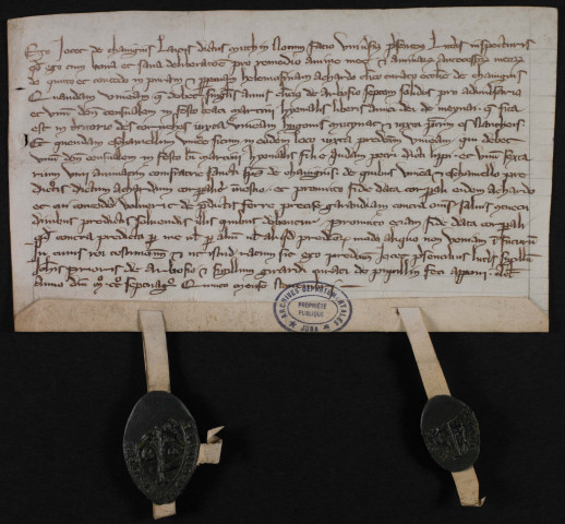 Sceaux de Jean, prieur d'Arbois, et de Girard, curé de Pupillin.