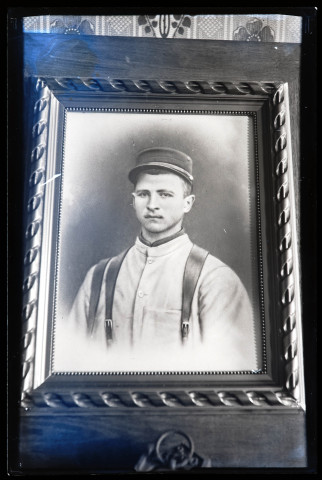 Reproduction d'un tableau encadré représentant le portrait d'un jeune militaire.