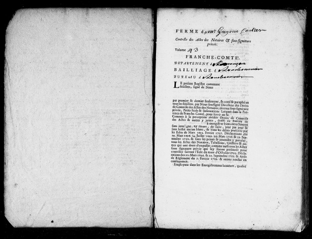FRAD039_2C_Contrôle et insinuation des actes de notaires et sous seing privé, 1693-1791