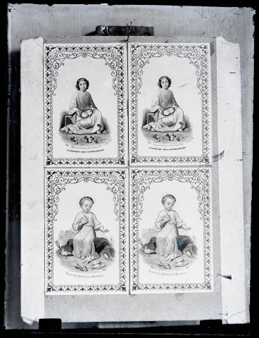 Reproduction d'images pieuses légendées "J'attends des consolateurs" et "Venez et je guérirai vos blessures".