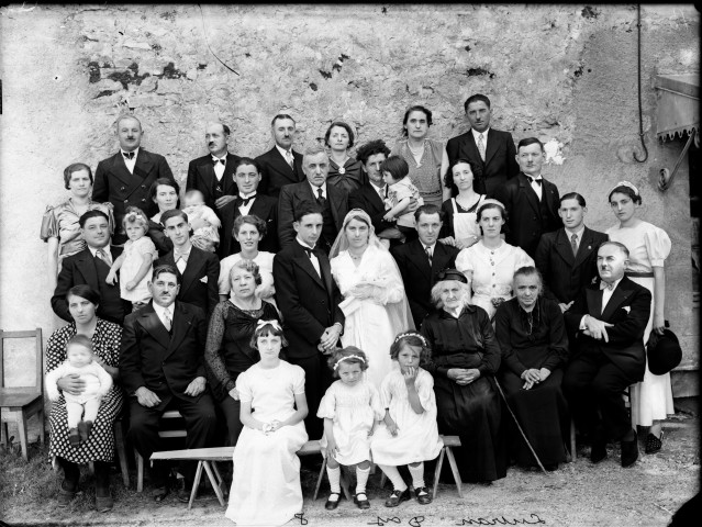 La très grande majorité du fonds est constitué de photos d'identité individuelles ou familiales réalisées soit en gros plan, soit en plan américain, soit en portrait en pied. Outre cette galerie de portraits impressionnante, on trouvera dans ce fonds et notamment dans la sous-série 28 Fi des images présentant un intérêt documentaire certain sur presqu'un siècle de vie d'un canton rural. Les mutations en profondeur de ce monde agricole deviennent lisibles et tangibles. Ce ne sont plus des mots, mais des photos. De la traction animale on passe à la machine à vapeur, puis au moteur à explosion. De la lampe à pétrole, on passe à l'électricité. Peu à peu émerge une civilisation de loisirs.