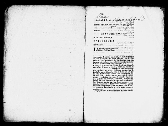 • Y. TRIPIER, "L'enregistrement et le contrôle des actes judiciaires et sous seings privés en Franche-Comté dans le bailliage d'Amont de la conquête française à la Révolution", dans Mémoires de la société pour l'histoire du droit des anciens pays bourguignons, comtois et romands, t.33, 1975-1976, p. 319-325.