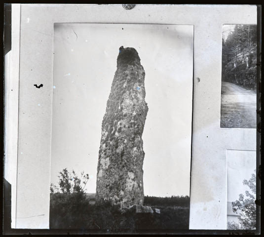 Reproduction d'un cliché représentant un menhir.